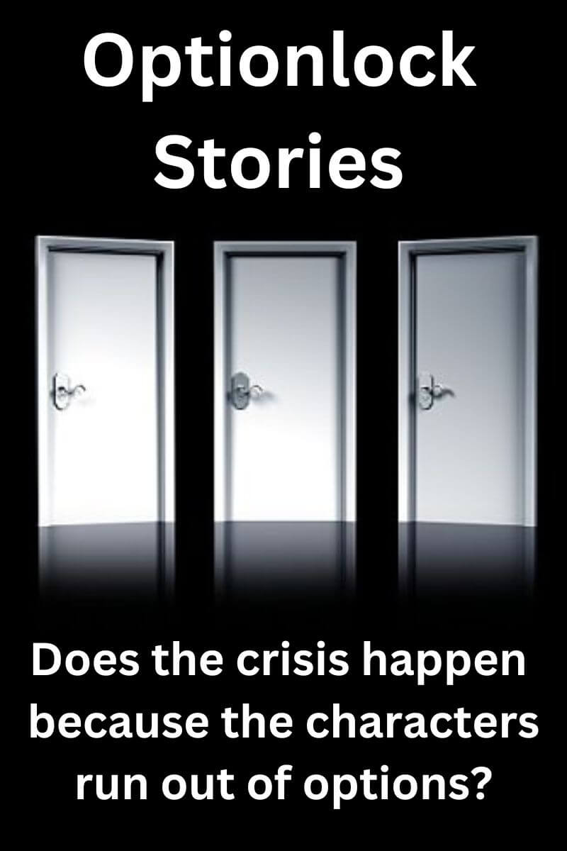 So, in this story, the optionlock is the limited number of possible murderers. As each person is killed, the options narrow. We know that eventually there will be just two people on the island: the main character and the murderer, and we will know who the murderer is.